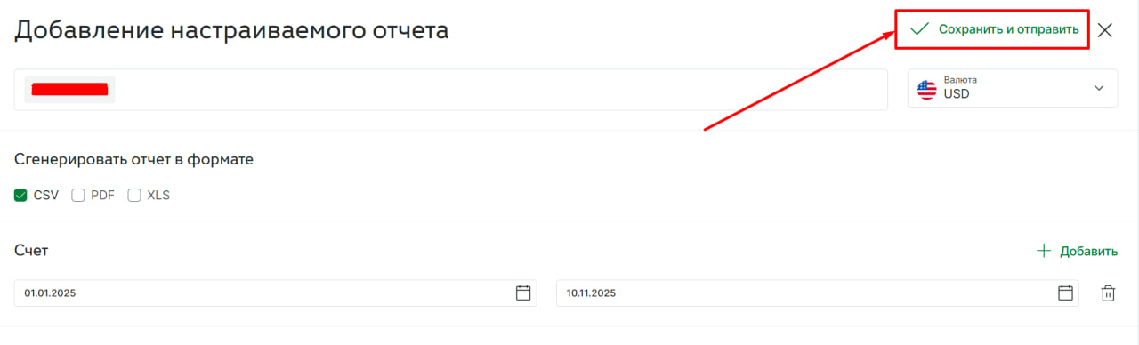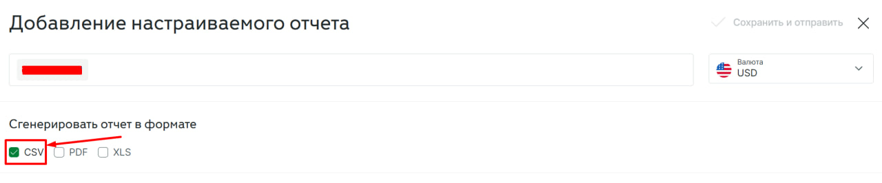 3. В поле «Сгенерировать отчет в формате» выберите CSV.