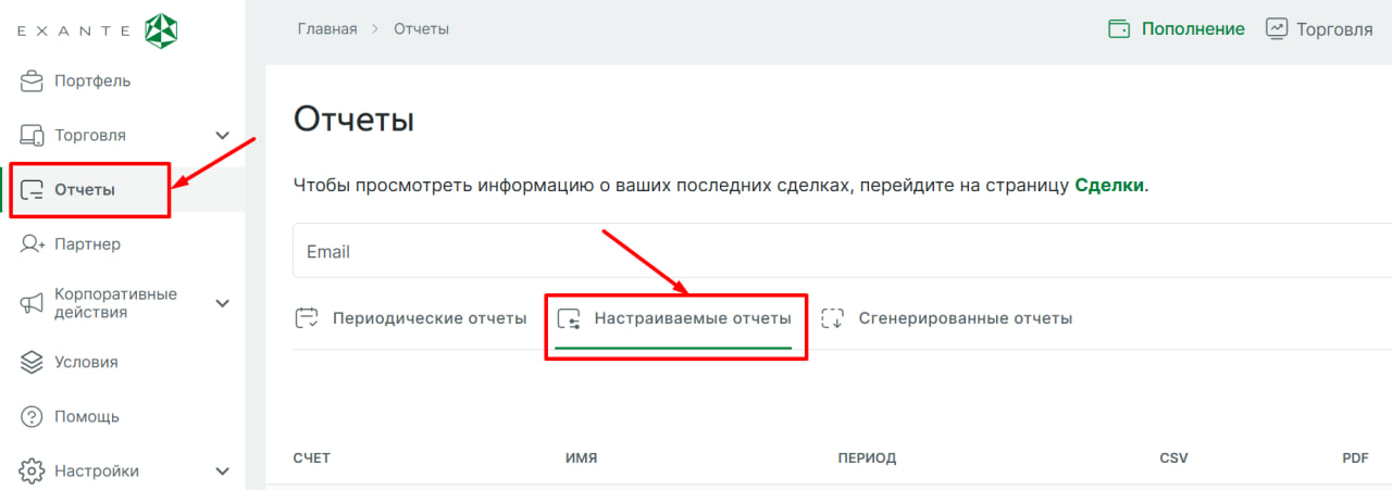 1. Выберите в меню слева раздел «Отчеты» и на странице отчетов нажмите «Настраиваемые отчеты».